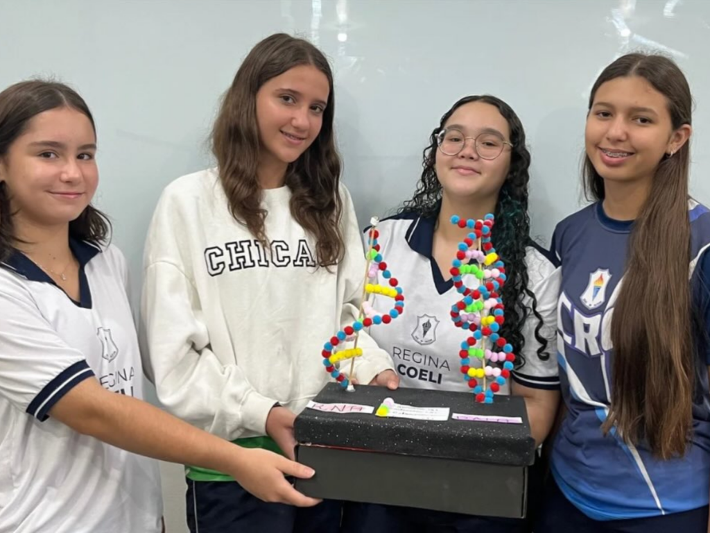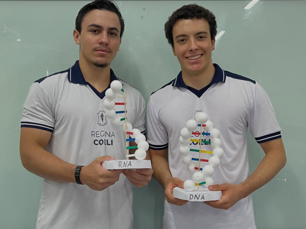 Durante as exposições, os estudantes abordaram aspectos fundamentais dessas moléculas, como suas estruturas, funções e relevância para os seres vivos. O DNA e o RNA, responsáveis por armazenar e transmitir as informações genéticas, foram explorados de forma clara e didática, demonstrando o domínio dos conteúdos trabalhados em sala.